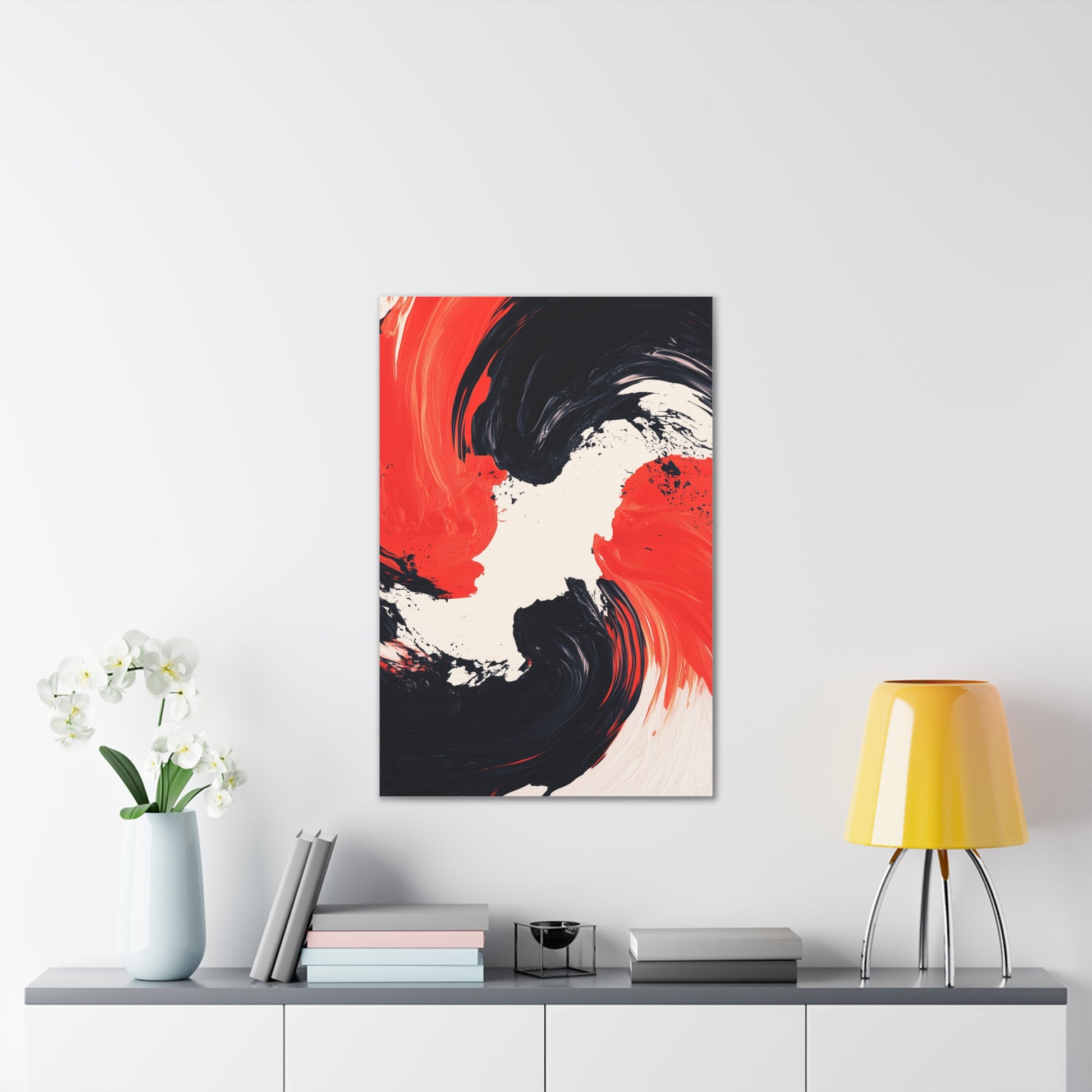 Abstract Red & Black Swirl Canvas Art – Modern Stretched Wall Decor